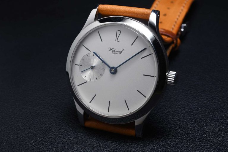 It has an almost ascetic aesthetic – with discreet printed hour indices topped with either a Roman or Arabic “12” and ‘Habring2, Austria’, the only text on the dial, finely written in two lines and placed under the 12 o’clock position. Then there is the fine, threadlike polished and almost blue black oxidised steel hour and minute hands that complete the harmony of the watch, completing the front view, somehow managing to make it feel both contemporary and classical at the same time.