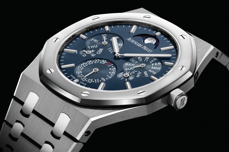 Well, the prayers of the patient have been answered with the launch of the same watch, albeit with some slight differences and now christened with the overtly straightforward “Royal Oak Selfwinding Perpetual Calendar Ultra-Thin” (ref. 26586IP.OO.1240IP.0). Maintaining the technical features of the RD#2, the watch has a movement measuring in at 2.89 mm in thickness and a case of 6.3 mm in height. What does this mean? Well, quite simply, it is now the world’s thinnest automatic perpetual calendar wristwatch that you can buy.