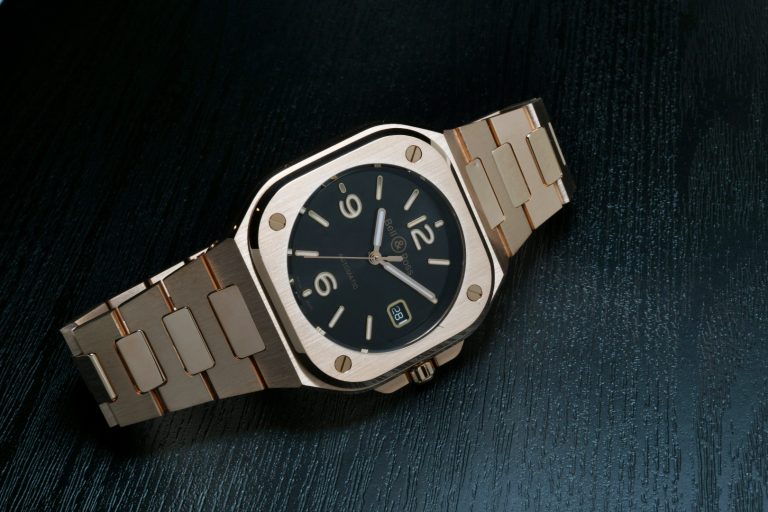 The proof of that comes most readily in the feel of this BR-05 in rose gold on the wrist, with the appropriate weighty feeling, and the elegance of the brushed and polished edges of the case and bracelet giving just the right amount of visual pizzaz.